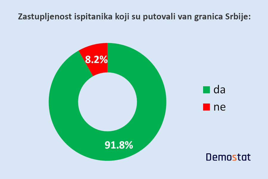 Zastupljenost ispitanika koji su putovali van granica Srbije: