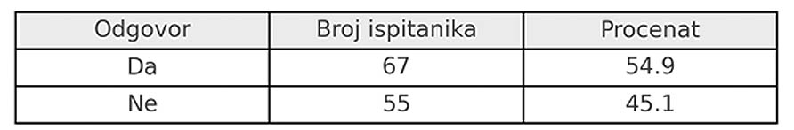 Istraživanje je sprovedeno anonimno, uz poštovanje etičkih principa i prava ispitanika na poverljivost. Učesnici su informisani o ciljevima istraživanja, a svi podaci korišćeni su isključivo u istraživačke svrhe.
