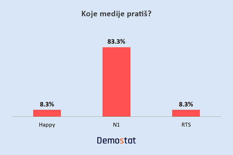 Međutim, samo malo više od polovine naših ispitanika gleda televiziju uopšte. Najviše se prati N1.
