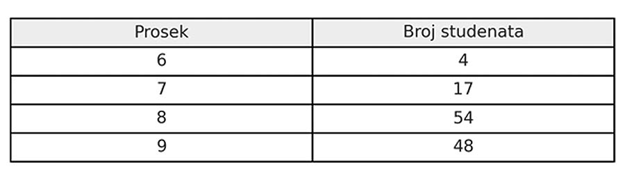 Zastupljenost prema proseku ocena: